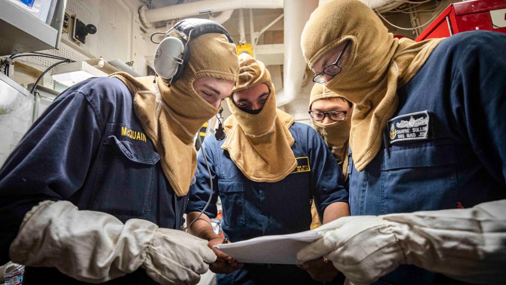 #USNavy Sailors simulate combating a fire during a damage control training team drill aboard the Arleigh Burke-class guided-missile destroyer#USSJohnSMcCain while underway ensuring a#FreeAndOpenIndoPacific in the#SouthChinaSea.pic.twitter.com/rPdN5L4JLH