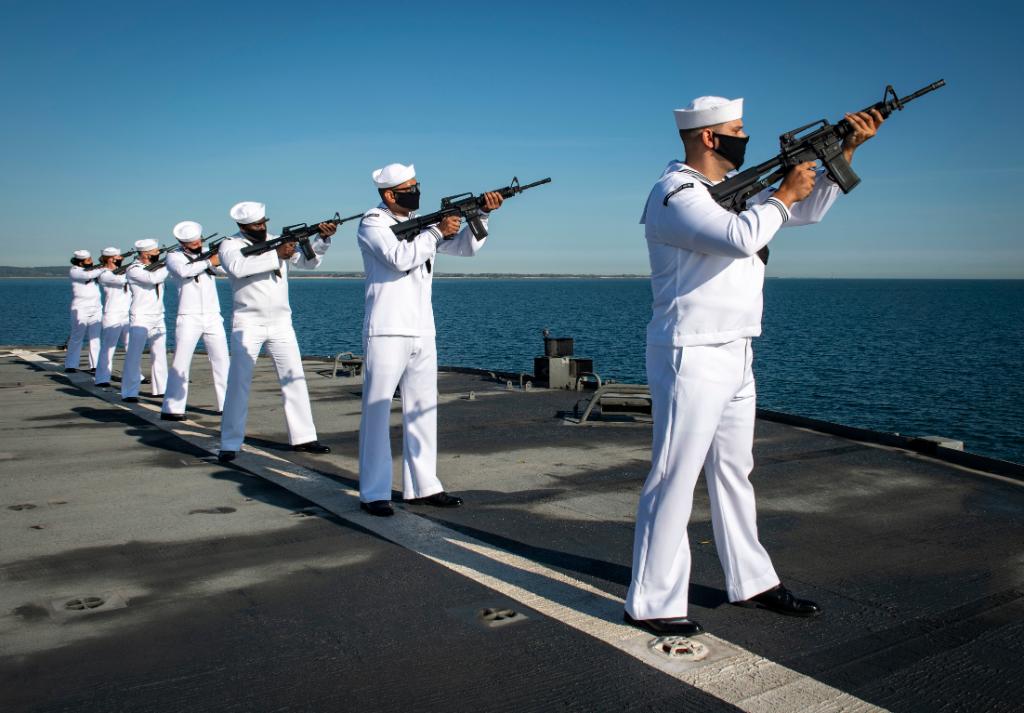 #HonorTheFallen#ICYMI: Sailors aboard#USSMountWhitney participate in a memorial ceremony off the coast of Normandy, France while in the English Channel. Mount Whitney is the@USNavyEurope flagship and is homeported in Gaeta, Italy.pic.twitter.com/vLBxeLs8N9