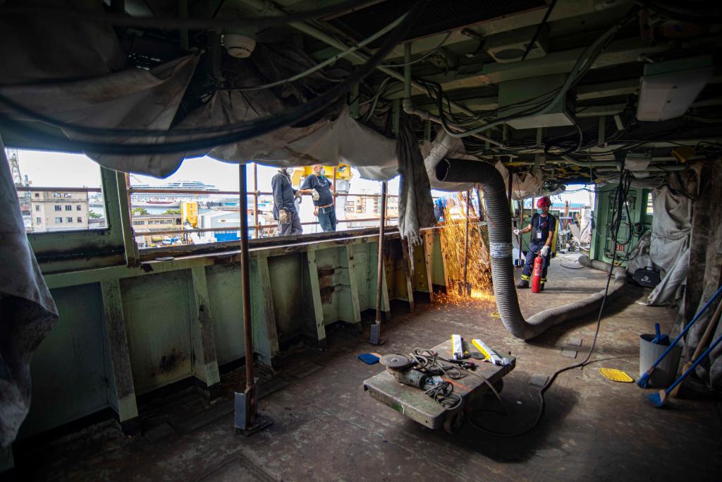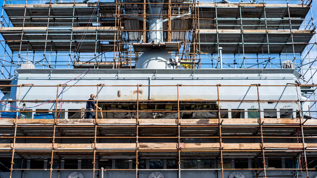 #NavyReadiness#USSMountWhitney gets worked on during the ship’s dry dock phase in San Giorgio del Porto in Genoa, Italy. Mount Whitney, the U.S. 6th Fleet flagship, is in a regularly-scheduled overhaul. pic.twitter.com/DpzMxsaGzf