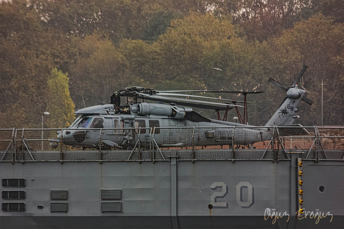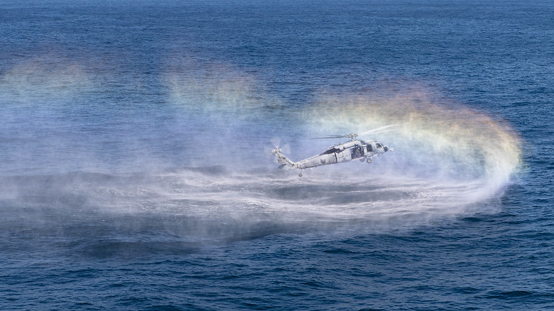 An MH-60 Sea Hawk helicopter attached to the “Dragon Whales” of Helicopter Sea Combat Squadron 28 currently assigned to