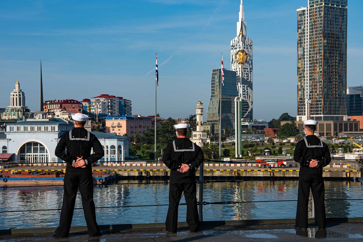 The @USNavyEurope command and control ship#USSMountWhitney (LCC 20) morning &#USSPorter (DDG 78) arrived in Batumi, Georgia, Nov. 8 for a scheduled port visit. Details here