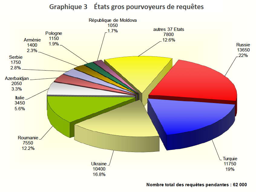 #CEDH est demeuré similaire : -#Russie (22 %) -#Turquie (19 %) -#Ukraine (16,8 %)#BilanCEDHpic.twitter.com/pTT3w3cEtg
