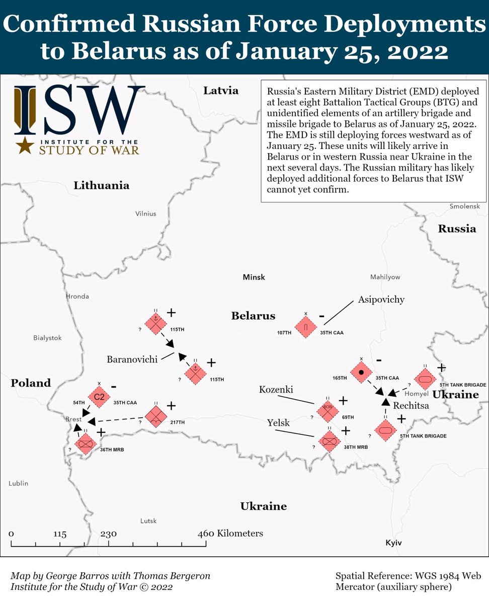 #Military situation on the#Ukrainian-#Russian border via@CSIS &@TheStudyofWar. The first ISW map shows the location of RU#battalion tactical groups (BTGs). The second ISW shows RU troop deployment inside#Belarus-which is even larger. pic.twitter.com/rKc3V8fDYY