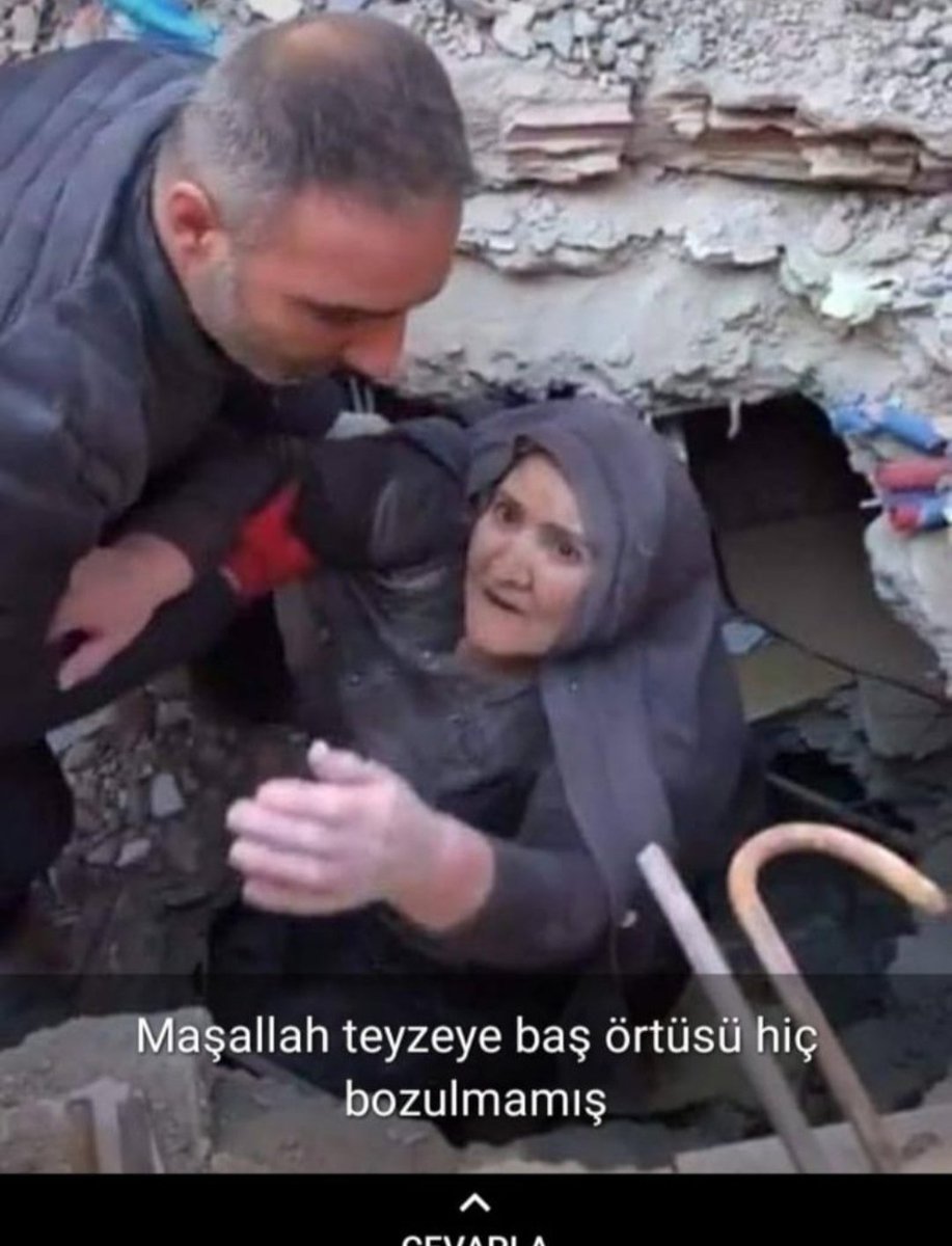 Keşke bu olayın videosunu izleyip öyle yorum yapsaydın. Teyzenin, enkazdan çıkarılmadan önce, görevlilerden başörtüsü istediğini görmüş olurdun.! Kötüsünüz.