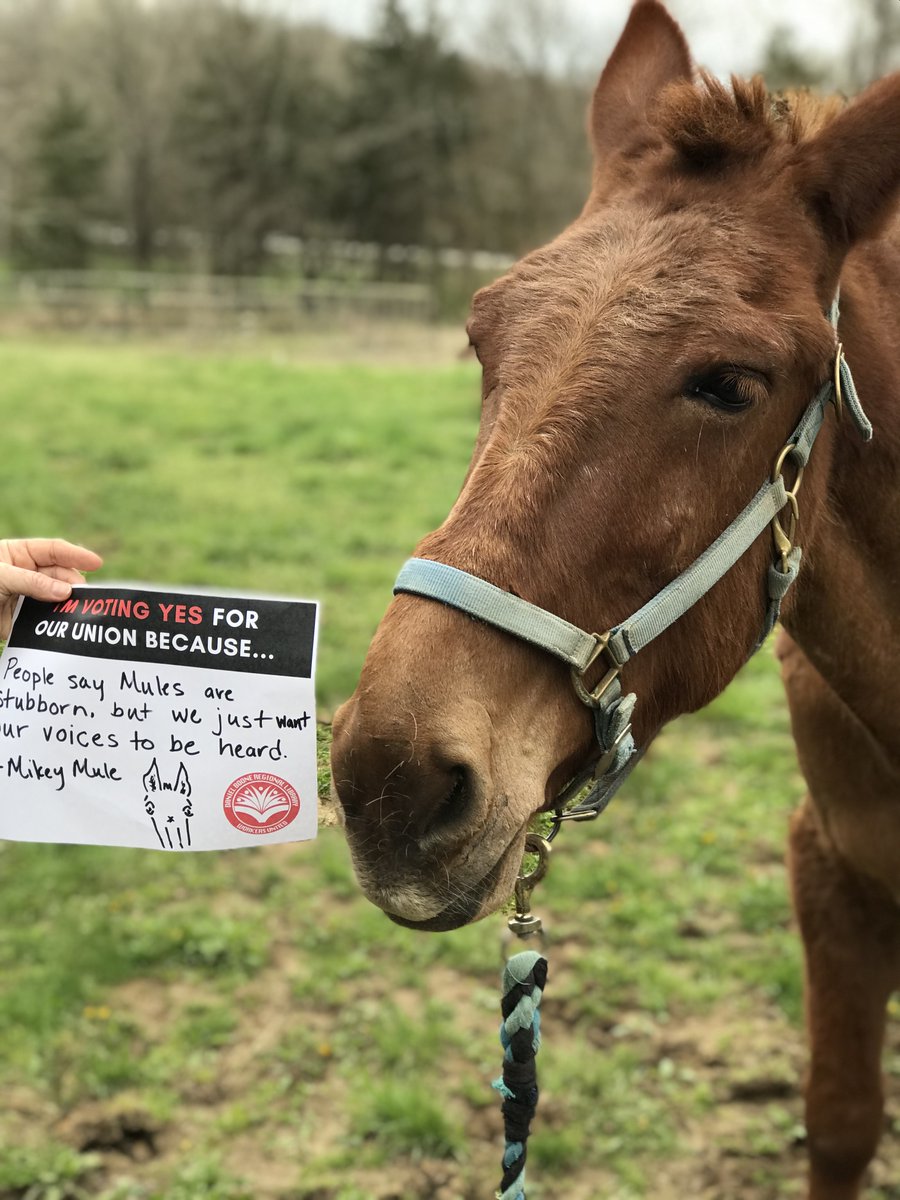 all in for DBRLWU? For Maggie, "I've seen the positive effects of a union at my previous job." As for Mikey Mule, "People say Mules are stubborn, but we just want our voices to be heard." #unionyes#dbrlwupic.twitter.com/yImGiy2Yjt