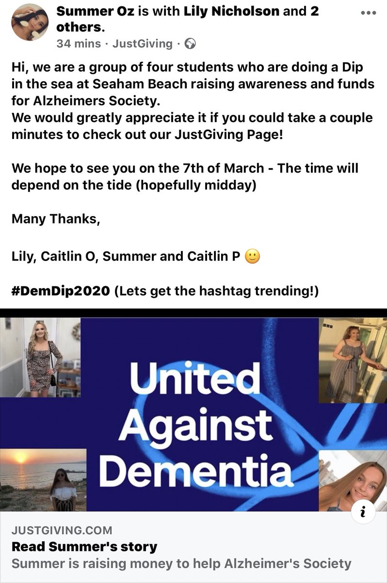 @alzheimerssoc ! Even if you share this post and get the#DemDip2020 trending that would be amazing#UnitedAgainstDementia pic.twitter.com/tSVBTZU33c