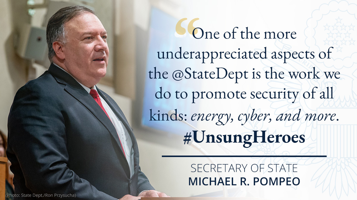 @StateDept is the work we do to promote security of all kinds: energy, cyber, arms control, and more.#UnsungHeroes pic.twitter.com/MHKB9Iqc0E