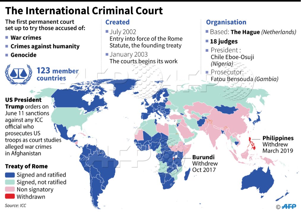 #UPDATE President Donald Trump on Thursday ordered sanctions against any official at the International Criminal Court who investigates US troops, ramping up pressure to stop its case into alleged war crimes in Afghanistan http://u.afp.com/3PFM pic.twitter.com/sStPqTCHgq