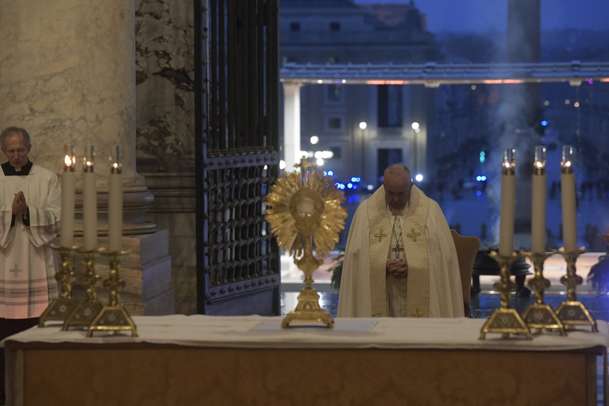 At a nearly empty St Peter's Basilica, Pope Francis'