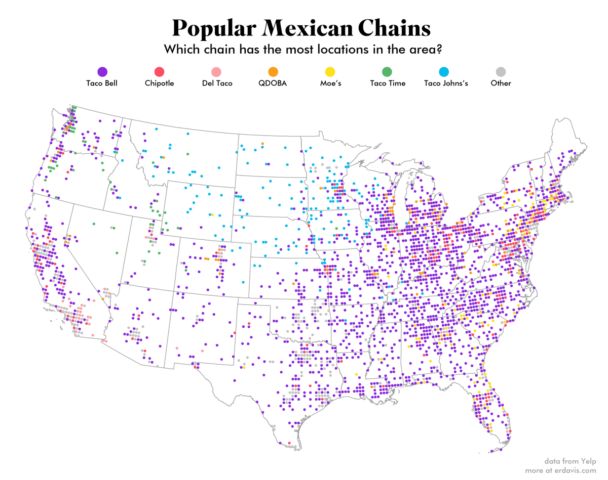 Ubicación de las cadenas de comida mexicana en el territorio de