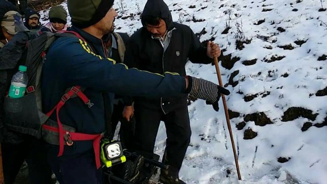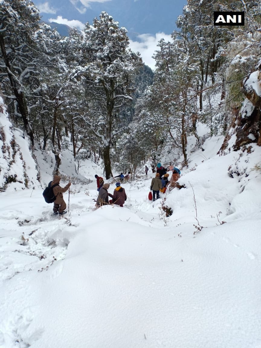 #Uttarakhand: State Disaster Response Fund (SDRF) team rescued members of Youth Hostel Association India and recovered their 24 tractors from Chaainsheel track in Uttarkashi; they went for trekking but got stuck there due to a sudden change in weather on April 11 pic.twitter.com/1NqZeOqnRs