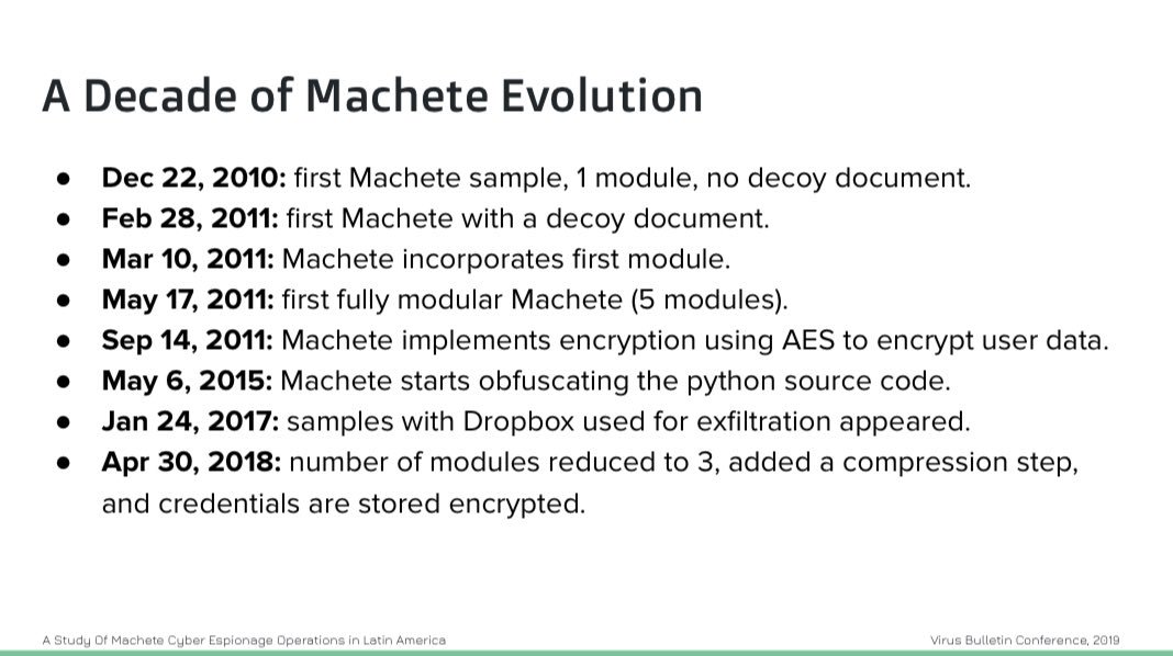 #VB2019 our research on 9 years of Machete activity. We looked at more than 176 campaigns! Thanks to my partners in this research@mrigaki@_kamifai_ and@eldracote!