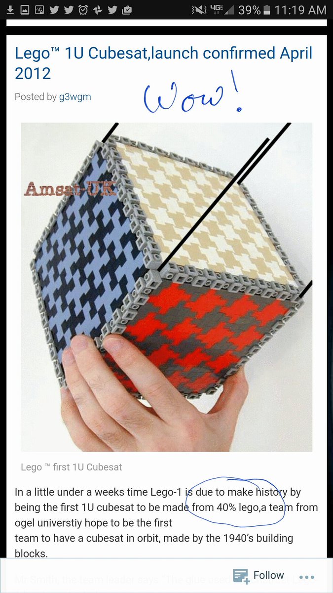 #VEXAG During the break we were discussing using Legos to build CubeSats. Looks like it was done in 2012. pic.twitter.com/9G2V9KfQCL
