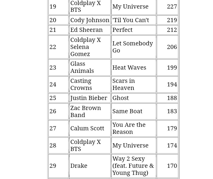 98% of the songs in the list are of BTS