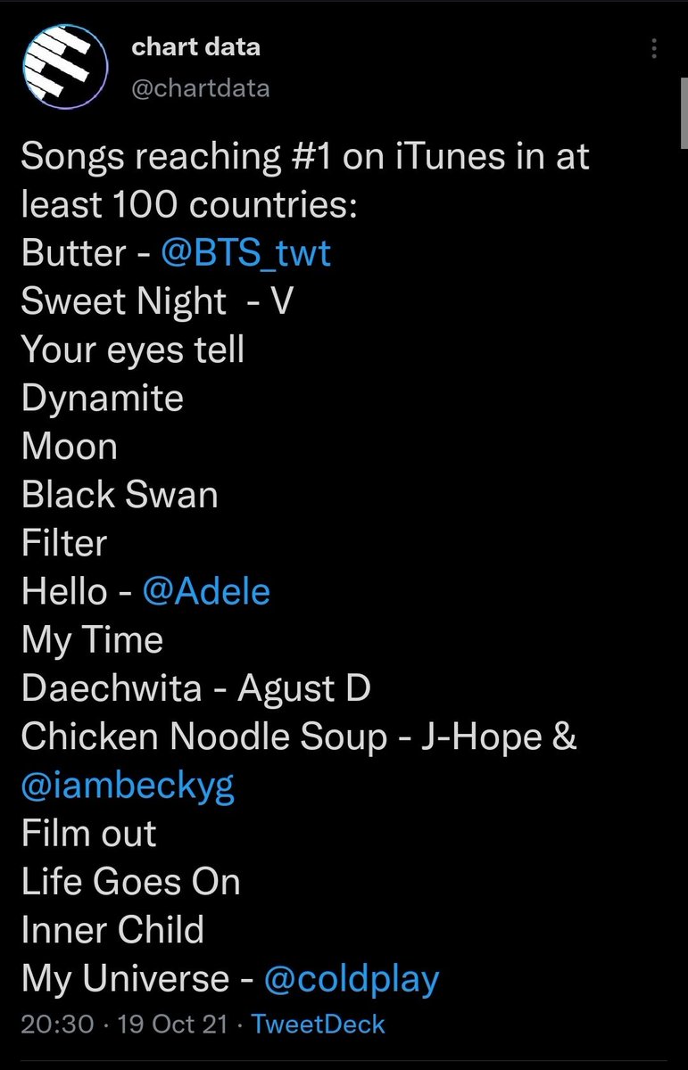 On US iTunes Coldplay X BTS My Universe SUGA's Remix at No 6 and My Universe at No 19 and My Universe version at No 28 pic.twitter.com/XINkymkS5R