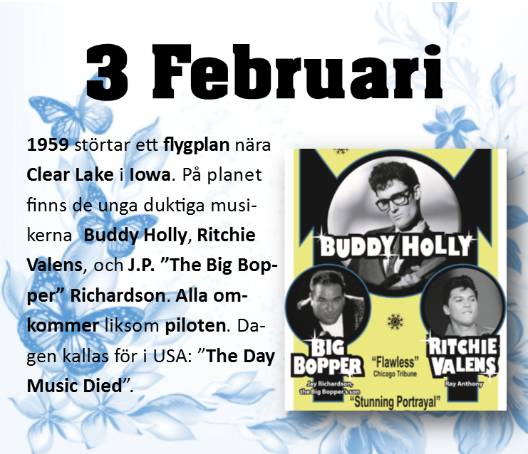 February 3 1959, The Day the Music Died - remembers the deaths of Buddy