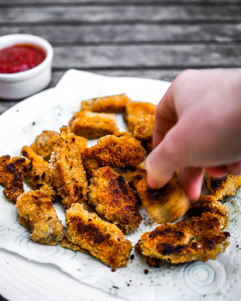 This self-timer caught me swiping a seitan chicken nugget mid-shoot
