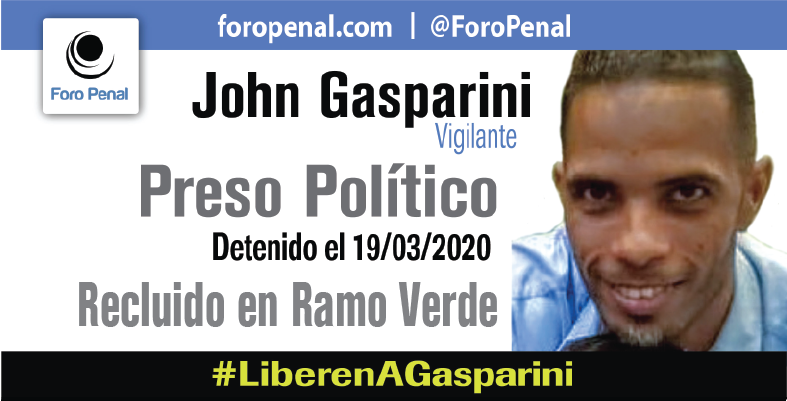 John Gasparini: vigilante, privado de libertad con fines políticos desde el 19/03/2020.-