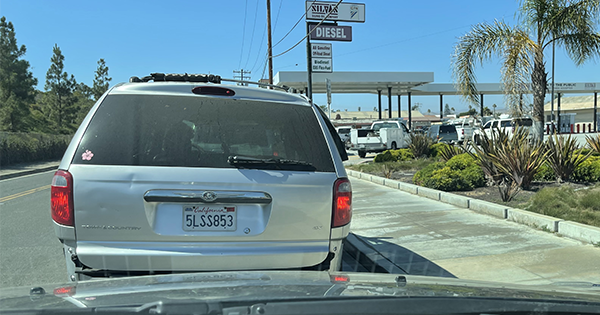 Rising gas prices backs up cars onto the street to get cheap gas at Silvas Oil in