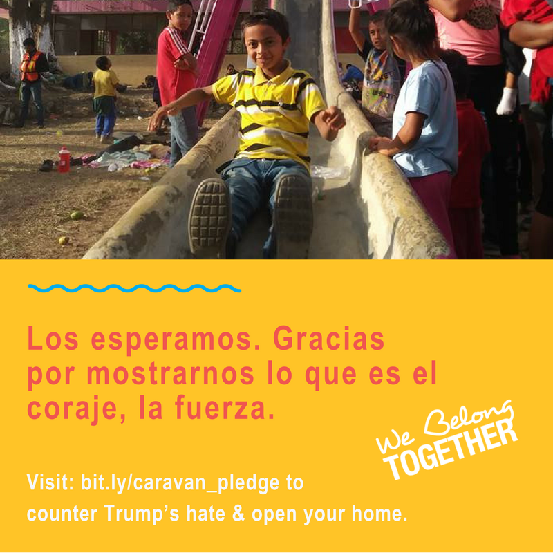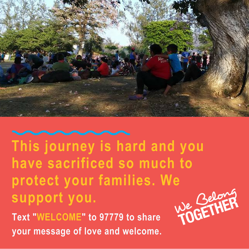 As trolls & Trump try to terrorize women and families traveling north to safety, we send messages of love & solidarity. Text "WELCOME" to 97779 to send your message too.
