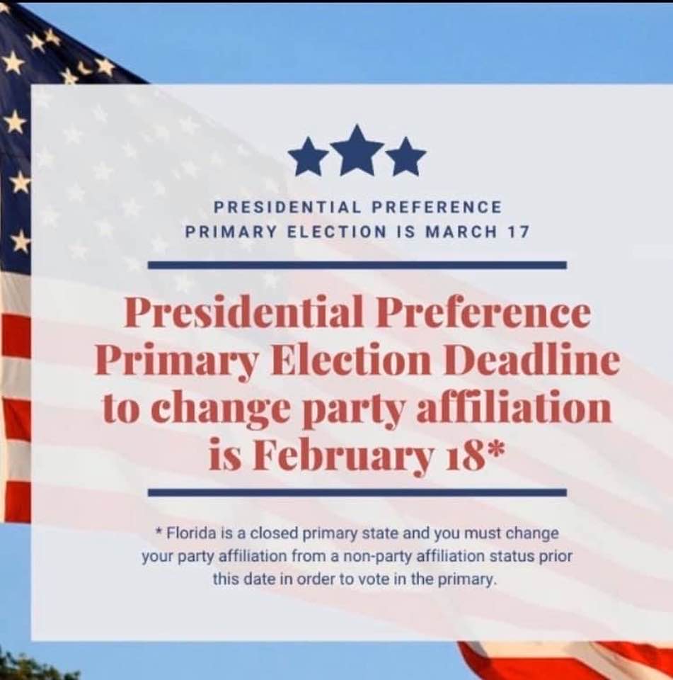 #Victory2020? To vote in the Democratic Primary you MUST be registered as a DEMOCRAT by Feb 18, 2020. Don't delay, it only takes a few minutes to register. Register here: https://registertovoteflorida.gov/home pic.twitter.com/GOFgQY6thU