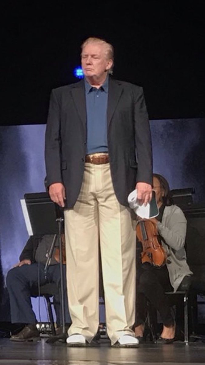 Check this out. New video of Trump with new hair style at McLean Bible Church, Wolf Trap, Virginia Trump, stands and awkwardly moves as minister talks to congregation