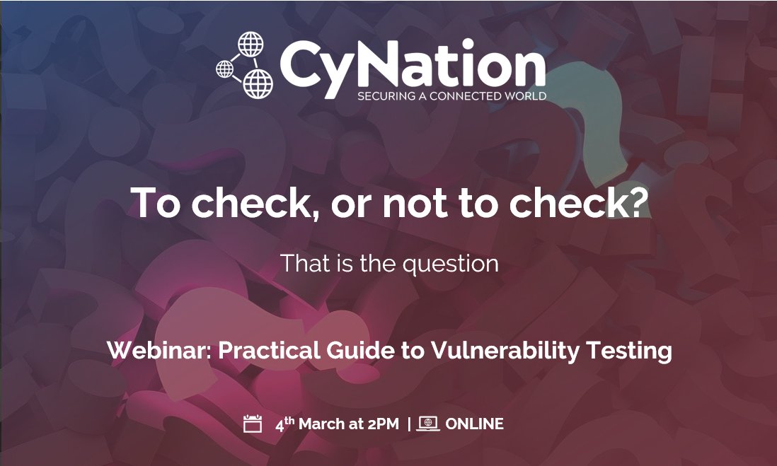 #business#operations, the answer is always to check! Learn how to make the most of your#pentesting and#security methods at our webinar: http://ow.ly/AVcB50y4ggd#cybersecurity#CISO#CIO#vulnerabilityManagement pic.twitter.com/te0lwcRxjO