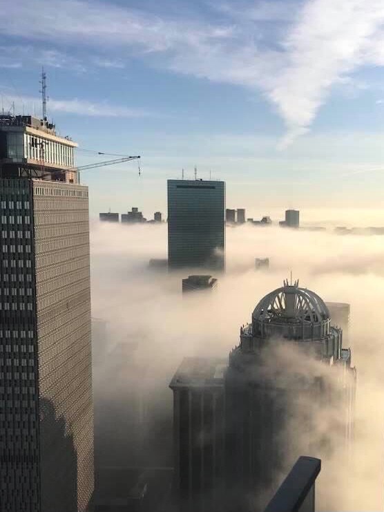 Sweet photo from this morning of fog engulfing downtown Boston. Sent in by Matt Stead.