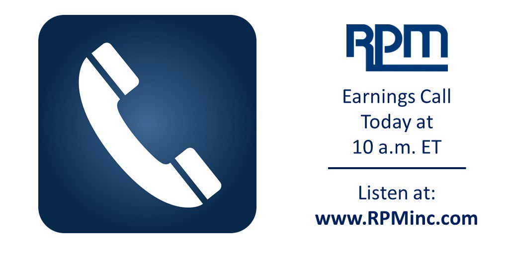 $RPM FY18 Q4#earnings call and#webcast with financial analysts starts now. Listen online: http://ow.ly/jEvD30l0VJR pic.twitter.com/79Y8znYvar
