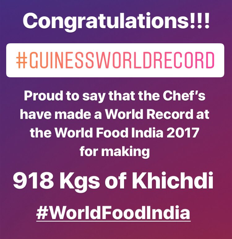 #GuinnessWorldRecord for cooking 918 Kgs of#Khichdi at#WorldFoodIndia#WFI2017#KhichdiForWorldRecordpic.twitter.com/pyHZxz83VO
