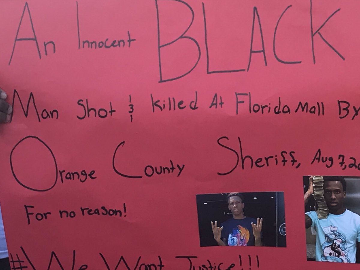 Protesters gather at a shopping center along OBT. Angry about the shooting death of Salaythis Melvin.