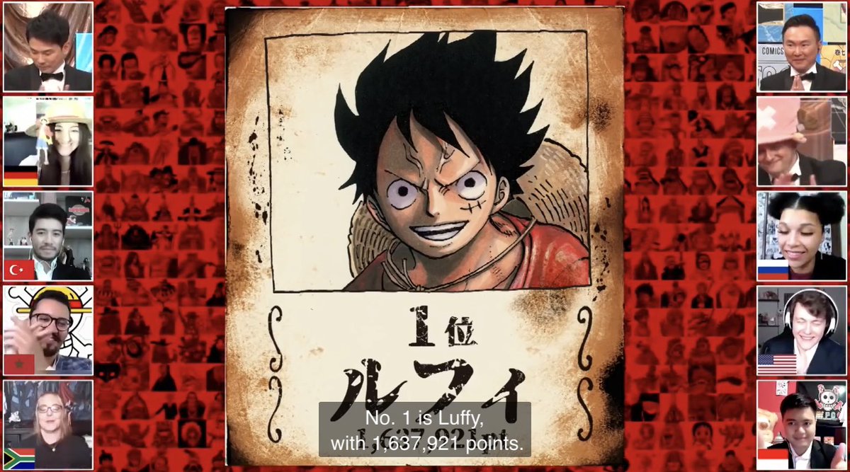 The final results of #WT100 were announced in two videos. I’ll never forget this. I’ll continue giving my heart and soul to One Piece and Luffy every day!!