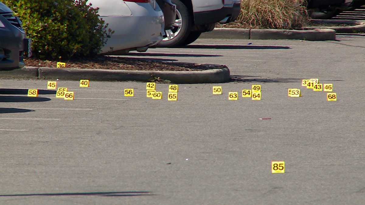 Evidence markers in the parking lot of Temerson Square in downtown Tuscaloosa after a late-night shooting sent 5 people to the hospital. The latest coming up at 6:00 on
