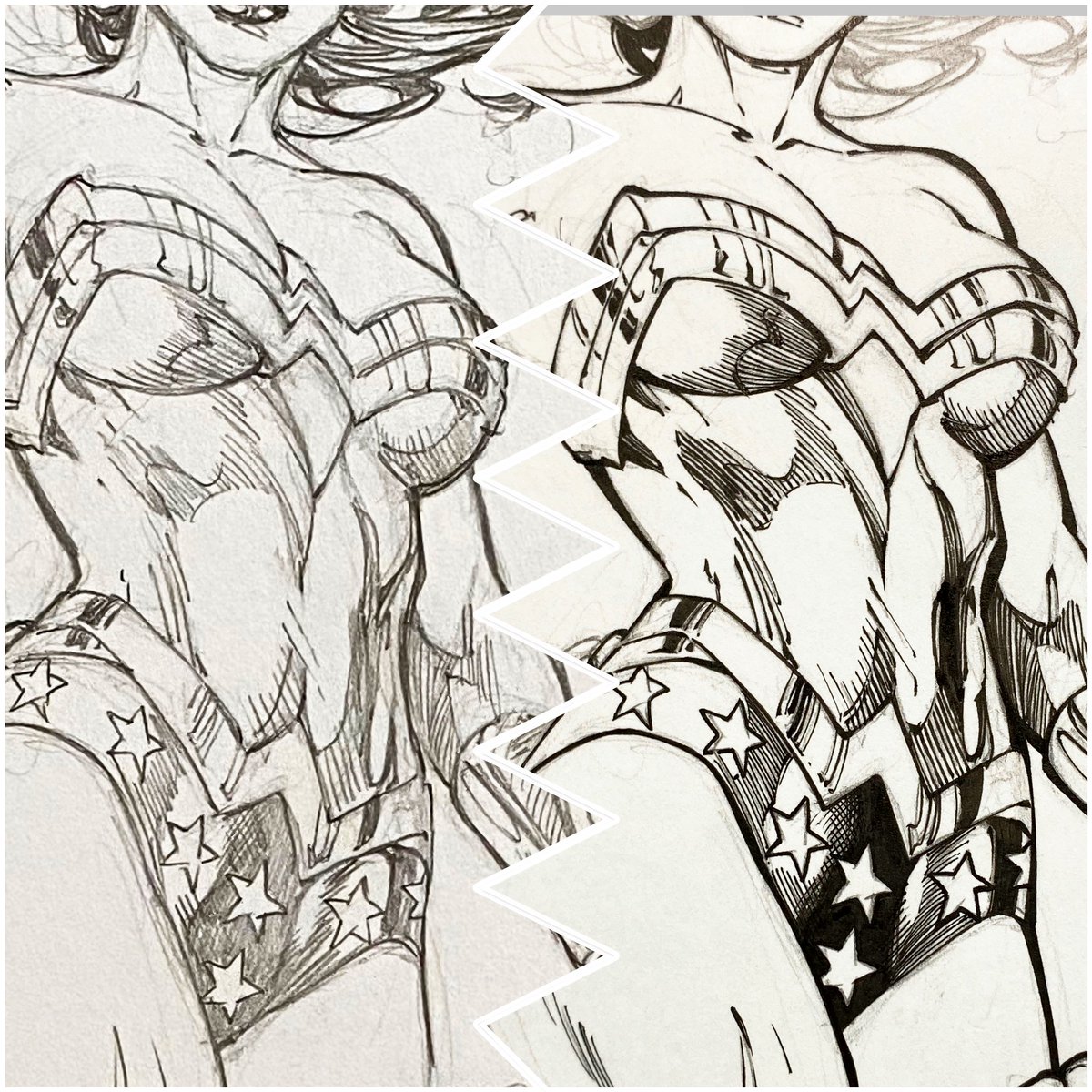 #beforeandafter#WW#inks#comics#WonderWoman#art#oldschool#inkmonkey#Hope#inking#lowtech#skills#commissions#WIPpic.twitter.com/4keKWCu61t