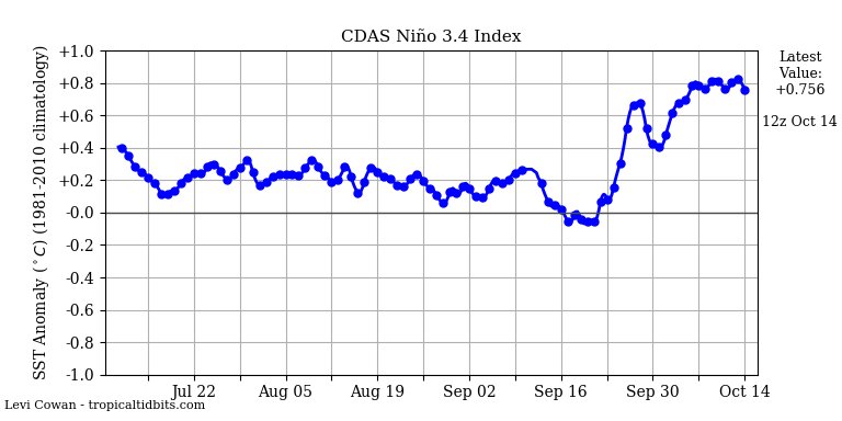 #ElNino kicking into full mode after an especially strong westerly wind burst earlier this month. ENSO & PDO of the same phase, which should help to magnify#ElNino impacts later this winter.#wxtwitter#climate#winterpic.twitter.com/PHKL1VD0IU
