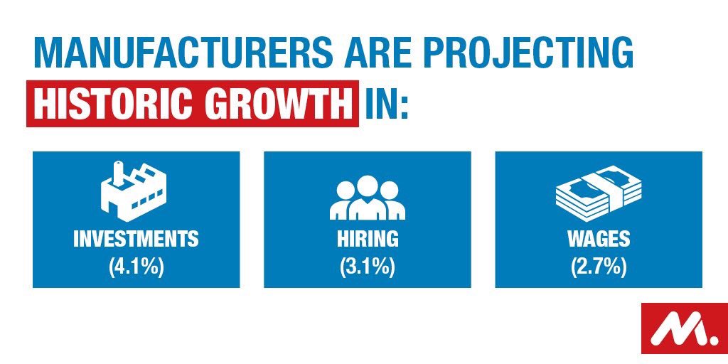 Manufacturers are projecting significant growth in wages, investments, and jobs thanks to tax reform, regulatory reform, and other pro-growth policies. http://bit.ly/2tddiyz