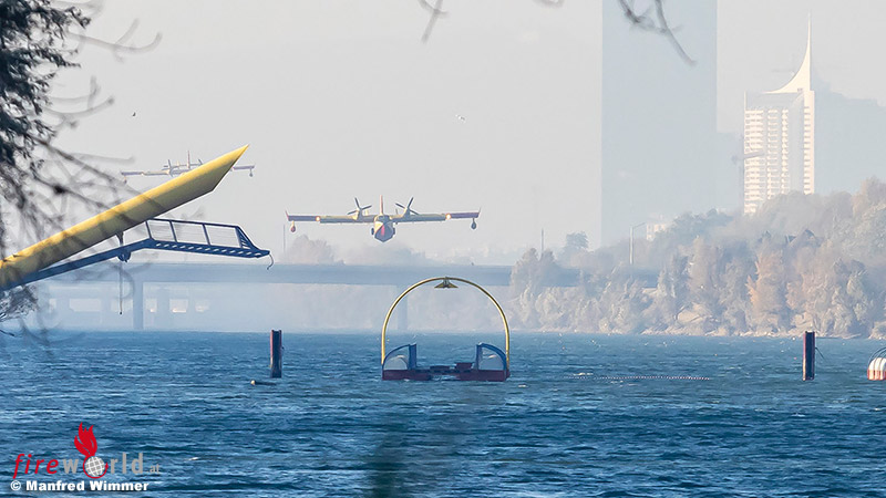 #Vienna today. Two CL-415 sent from#Italy yesterday scooping up water from the New Danube in the city to fight the ongoing#Wildfire in the neighboring State of Lower Austria.#AvGeek#Waldbrand https://twitter.com/FireWorldAT/status/1454805815404150792 …