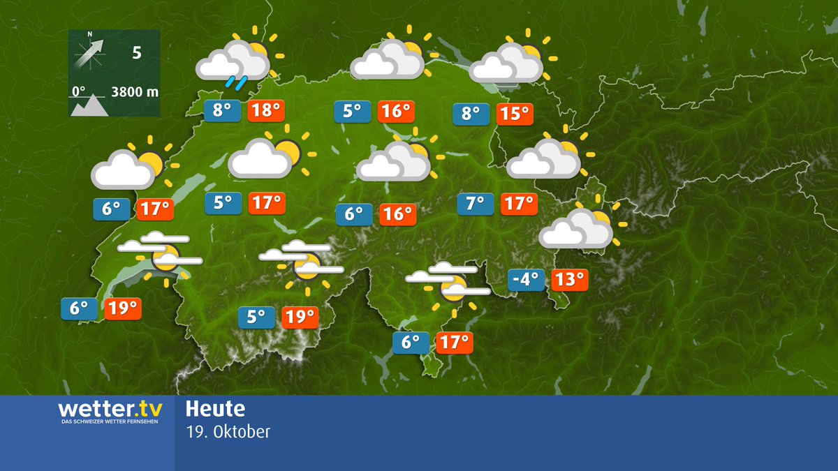 #Nachmittag lässt sich die#Regenjacke vielerorts mit der#Sonnenbrille tauschen. Es wird nämlich zunehmend trockener und sonniger bei Höchstwerten zwischen 14 und 17 °C. Gegen Abend ziehen hohe Wolken als#Vorboten einer#Warmfront auf. ^ng pic.twitter.com/ty2hX4XMNr