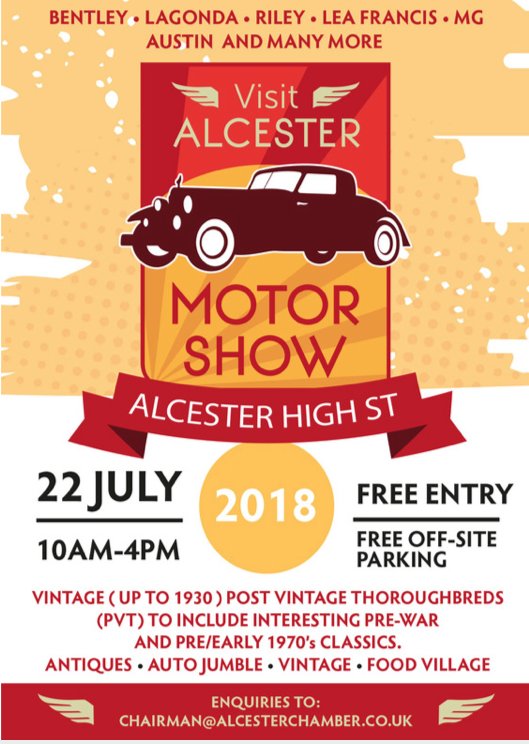 Sunday 22nd July!! Free visitor entry! Alcester Motor Show with Ale festival