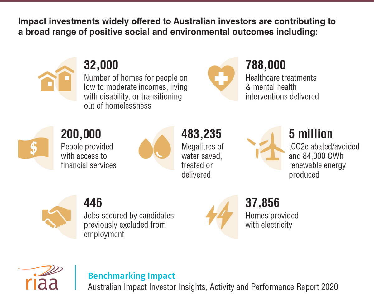 Impact investments in Australia are contributing to a broad range of positive social and environmental outcomes including