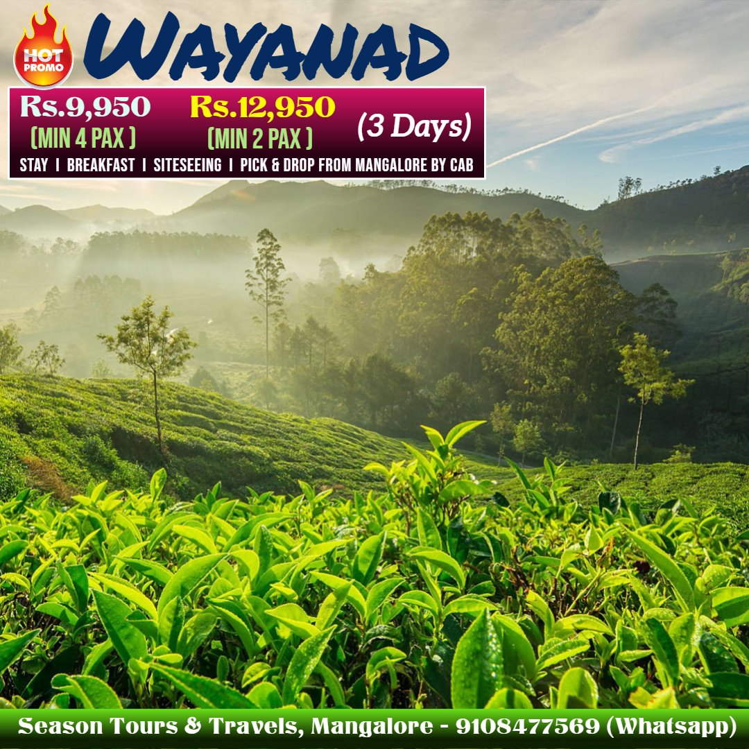 #Wayanad Tour Package directly from Mangalore. Cost mentioned Per person. pic.twitter.com/mpbg7aGPel
