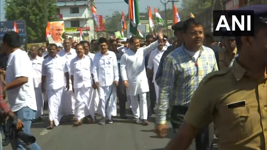 #Kerala: Congress MP@RahulGandhi leads 'Save the Constitution' march in Kalpeta area of his constituency#Wayanad. LIVE | http://bit.ly/2t9gn5X pic.twitter.com/jBYNUGPWBG
