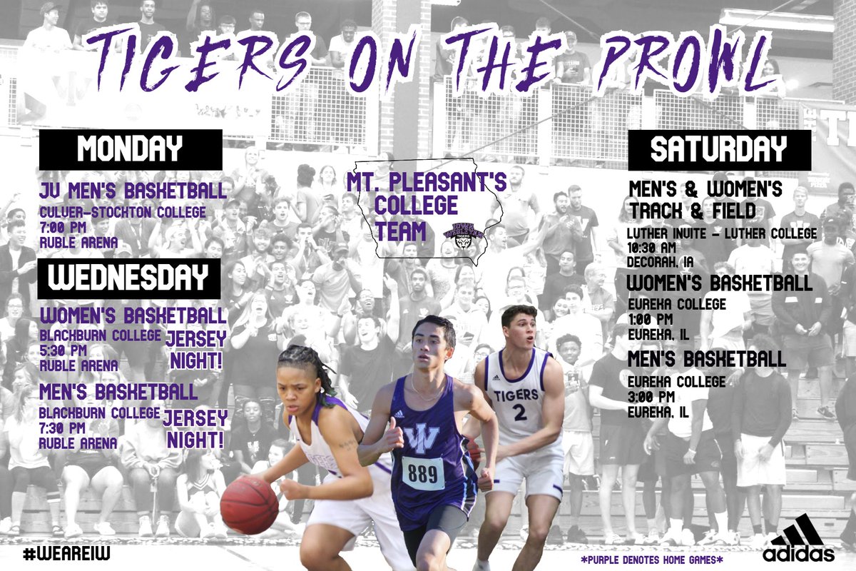 TIGER NATION: Check out this week's Tiger Athletic events!! Don't miss out on our home games (JV Men's Basketball tonight and Men's & Women's Basketball Wednesday!). Show your Tigers some love!!