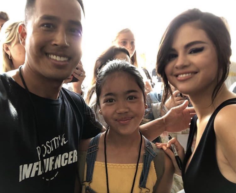 Selena taking selfies with a fan at