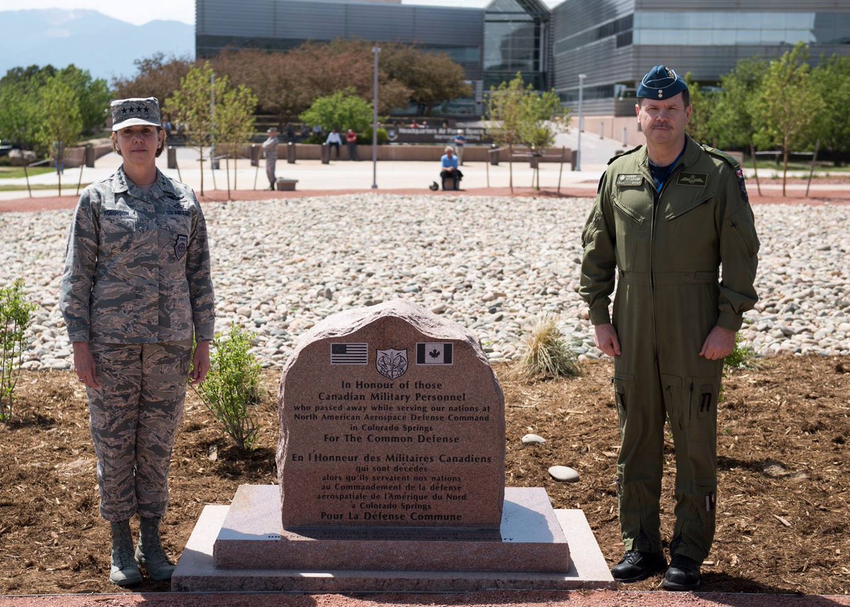 NORAD unveiled a memorial cairn outside of its HQ building on Peterson AFB, Colo. The cairn honors Canadian service men & women who passed away while serving at NORAD. The dedication of the cairn was conducted in conjunction with the 60th Anniversary of