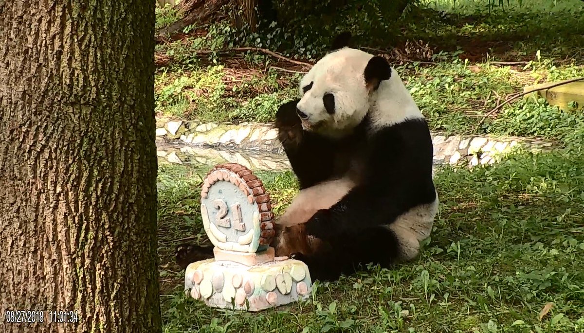 Happy 21st birthday to #TianTian! He celebrated with a cake made by our department of nutrition science. The cake had all of his favorite treats including diluted juice, sweet potatoes, carrots, apples, pears, bananas and leaf-eater biscuits!#PandaStory#WeSaveSpecies pic.twitter.com/YAqAadEoUt
