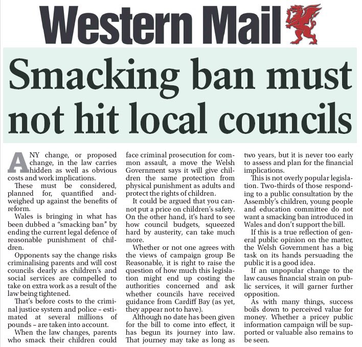 The Western Mail editorial this morning echoed our concerns: “This is not overly popular legislation...If an unpopular change to the law causes financial strain on public services, it will garner further opposition.”