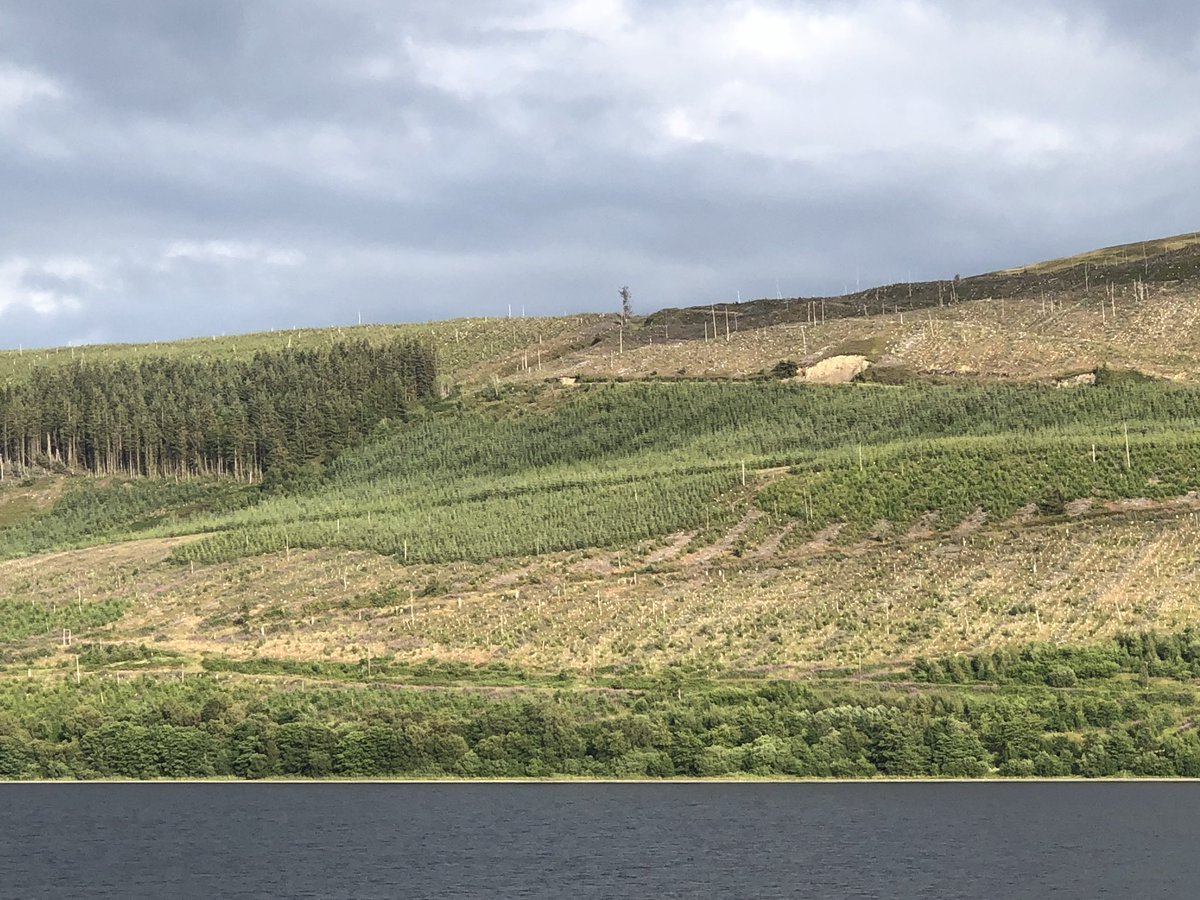 Bioblitz - the downside . Driving through the borders of Scotland - mile after mile of overgrazed barren broken land interspersed with big black blocks of non-native conifers .