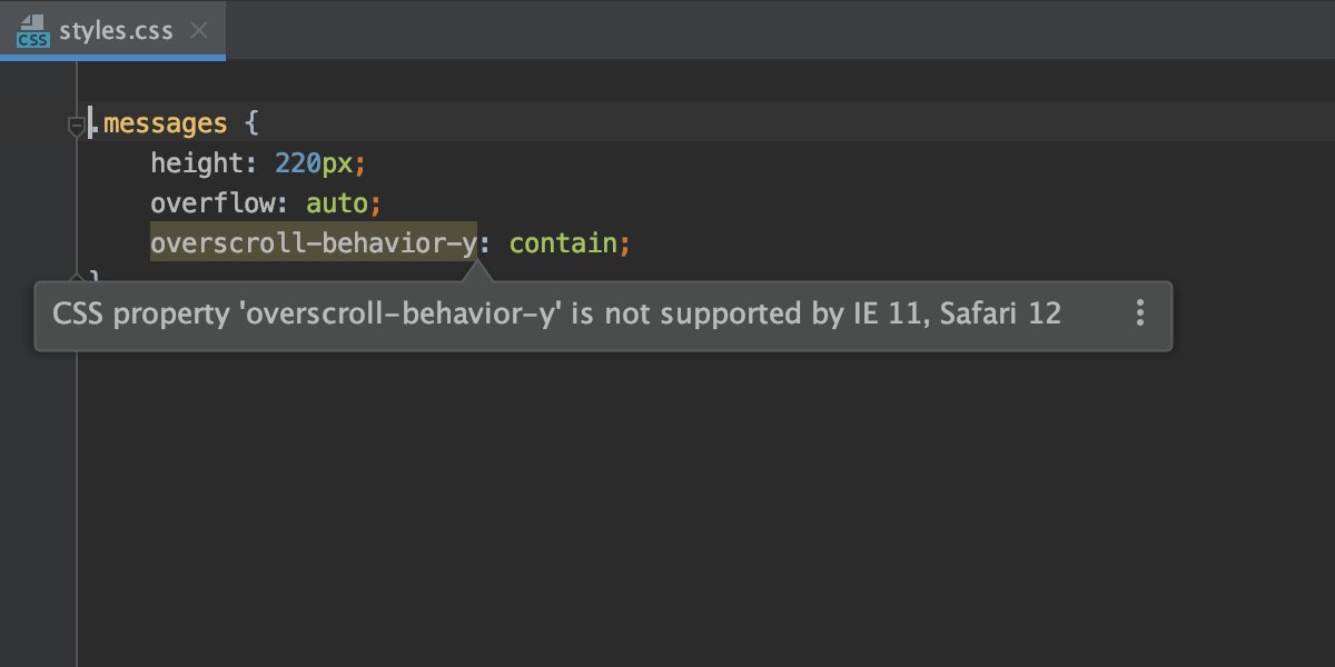 WebStorm can warn you when you use a CSS property that is not supported by the target browser. Go to Preferences | Editor | Inspections and enable the Browser compatibility inspection.