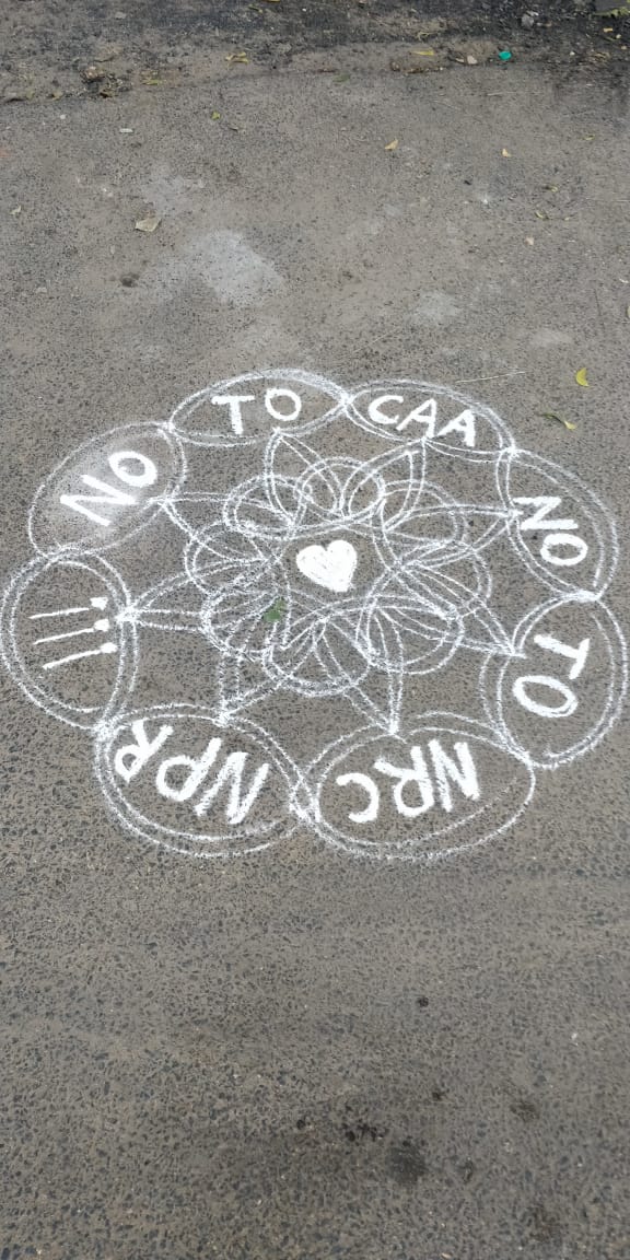 Can you imagine 5 people, including girls were detained in Chennai for drawing this Kolam. Request all friends in Chennai to make kolams all along and protest.